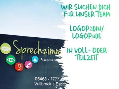 Wir suchen für unseren Standort in Ostercappeln-Venne zum nächstmöglichen Zeitpunkt engagierte Logopädin/en auf Minijob-Basis, vorzugsweise für die Nachmittage. Top Team, überdurchschnittliche Bezahlung, flexible Arbeitszeiten und vieles mehr. Wir freuen uns von Ihnen zu hören ;) Haben wir Ihr Interesse geweckt? Dann freuen wir uns auf Ihre Bewerbung per E-Mail oder auf dem Postweg. Sprechzimmer Praxis für Logopädie Inh.: Sandra Kämpf Vullbrock’s Esch 1 49565 Bramsche Tel.: 05468 – 7777 1 77 Mail: info@logopaedie-sprechzimmer.de Home: www.logopaedie-sprechzimmer.de
